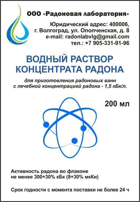Водный раствор концентрата радона